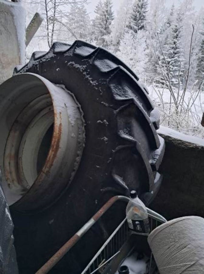Varusteltu paripyörillä sekä lähes uusilla renkailla.